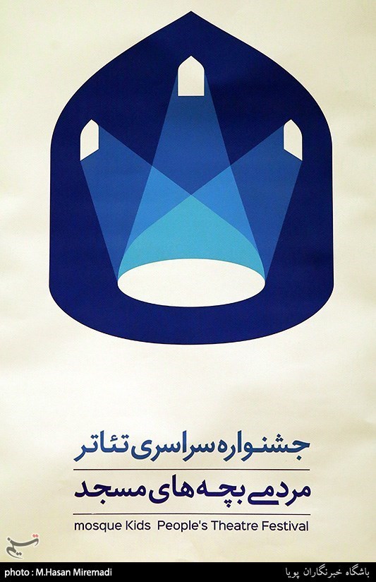 کوروش زارعی، مدیر مرکز هنرهای نمایشی حوزه هنری گفت:لوگویی طراحی شده کار یک گرافیست جوانِ تحصلیکردۀ خوشذوق که خودش مسجدی است و بچه مسجد و حزباللهی و غیرتهرانی است و بچه اصفهان است، آقای مغروری از گرافیستهای خوب و توانمند جوان کشور طراحی کردند، طراحی ما یک گنبد مسجد است که از پنجرههای گنبد نورهای موضعی که از خورشید، در مساجد دیدید که تشعشعات نور یک سایههایی میاندازد، این نورها آمده و در محراب و مرکز مسجد یک دایرهای که صحنه نمایش است که آن دایره سفید است که هم نماد محراب است که محراب جایگاه سجده و پاکی است و رنگ سفید رنگ پاک و مطهری است و آن معنویت مسجد و نمایش مسجدی در واقع میرساند، شکلش دیده میشود و در وسط همان گنبد به آن بزرگی که چشمانداز ما آن گنبد بزرگ است یعنی آینده ما، یک نوپا بودن و تازه بودن این حرکت را نشان میدهد. در وسط گنبد اصلی دیده میشود که هم شروع جریان است و هم نوپا بودن و جوان بودن گروههای ما و اینکه میخواهیم به جوانها در عرصه تئاتر بپردازیم را نشان بدهد، ما مانند همه لوگوهای تئاتری که یک چهره خندان و گریان است نیامدیم از آن فضا استفاده کنیم و بگوییم این نشان، نشانِ یک جریان تئاتری است، آمدیم از نورهای موضعی و دایره صحنه و استیج صحنه استفاده کردیم که یک مقدار متنوع است.»