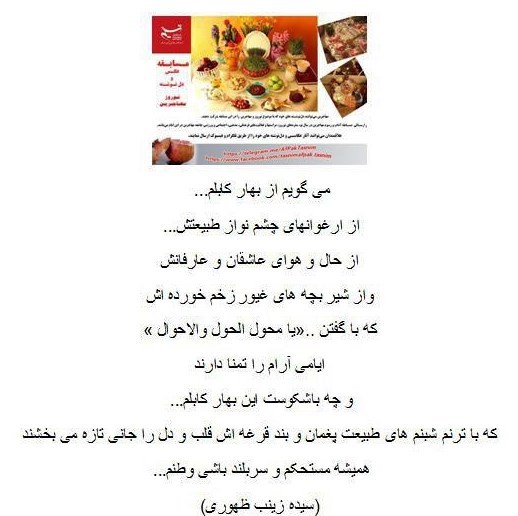- سیده زینب ظهوری مهاجر افغانستانی ساکن در مشهد، برگزیده بخش دلنوشته