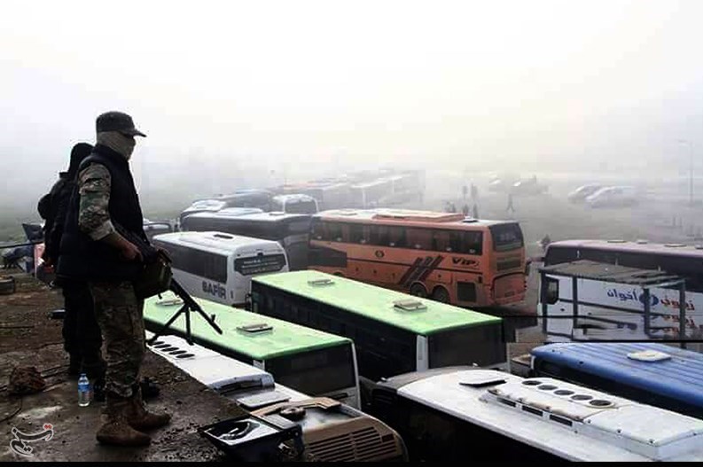 به گزارش خبرنگار خبرگزاری تسنیم در حلب، بامداد امروز اتوبوسهای حامل افراد مسلح از الزبدانی و مضایا در حومه دمشق وارد گذرگاه الراموسه در جنوبی غرب حلب شد که شامل 400 فرد مسلح و اطرافیانشان است، از جمله 158 تروریست وابسته به گروه تروریستی احرار الشام هم میان آنها دیده میشود.