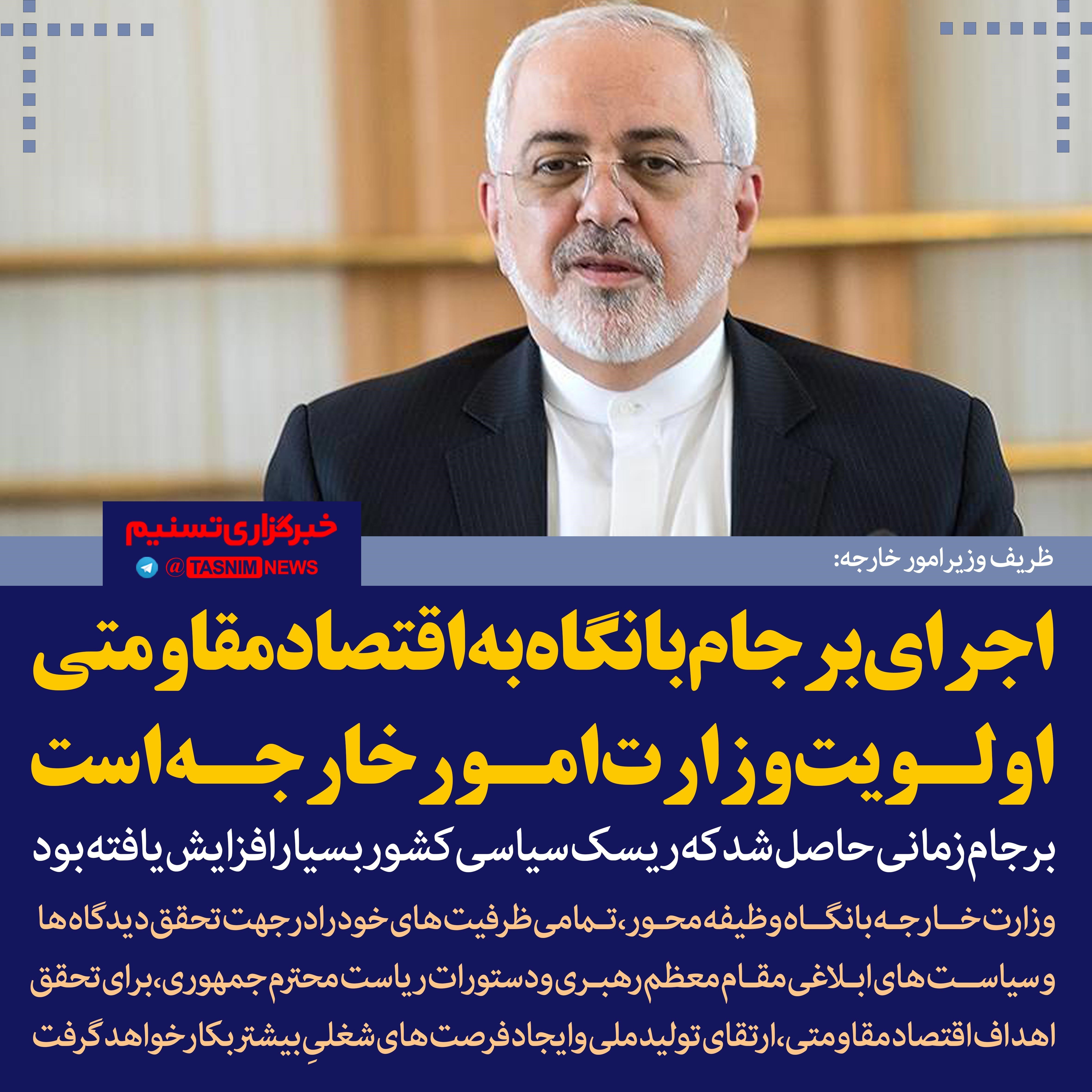 فتوتیتر/ظریف:اجرای برجام با نگاه به اقتصاد مقاومتی اولویت وزارت خارجه است