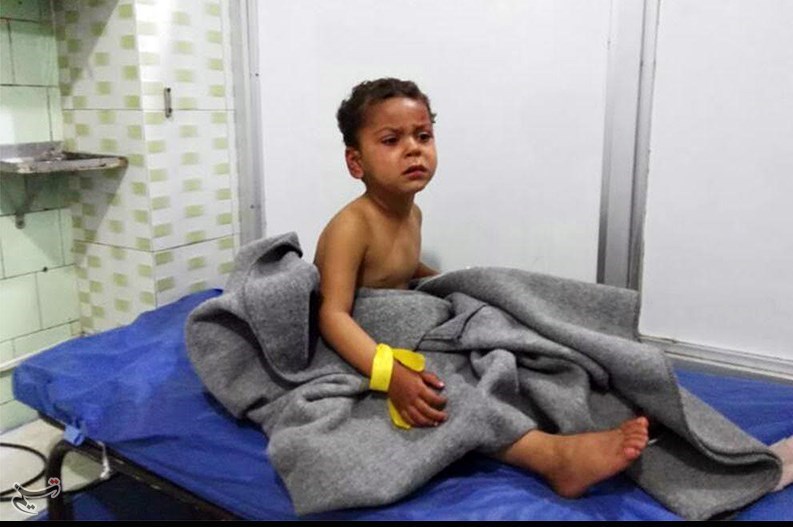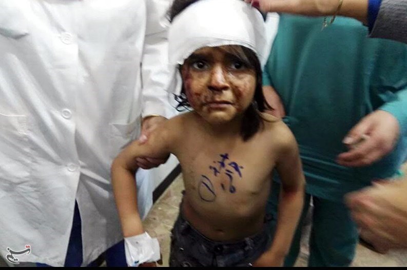یک کودک سوری با صورتی خونین و شرایط جسمانی دردناک با گریه و ناله به خبرنگار تسنیم گفت: من مجروح شدم، پدر و مادرم کشته شدند.