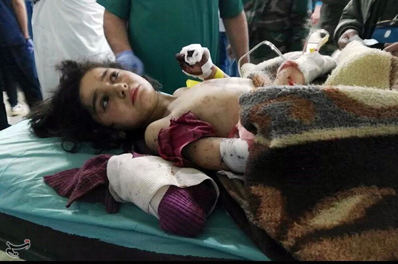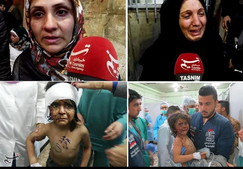 خبرنگار تسنیم پرسید: آیا اکثر مجروحان، کودک هستند؟ که زن سوری پاسخ داد: بله، اکثر شهدا و مجروحان، کودک هستند، ما در خودروهای امدادرسانی بودیم، هیچ چیزی را احساس نمیکردیم جز گرد و خاک که فضا را پر کرده و اجسادی که متلاشی شده بود، اجساد از هم متلاشی شده و ما هیچ چیزی درباره آنها نمیدانیم.