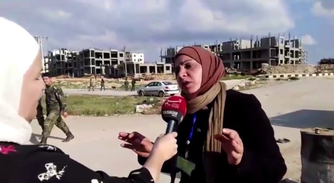 خبرنگار تسنیم پرسید: در این طرف، اهالی مضایا و الزبدانی و در طرف دیگر اهالی کفریا و فوعه حضور دارند، رفتار ارتش با اهالی مضایا و افراد مسلح را چگونه دیدید؟ این زن پاسخ داد: با صداقت تمام اعلام میکنم، امروز ارتش سوریه برای آنها ساندویچ شاورما آورد، ما به نیروهای ارتش اعلام کردیم که اهالی کفریا و فوعه گرسنهاند، به ما پاسخ دادند "ما سوری هستیم که با مردم اینگونه رفتار نمیکنیم، بلکه با اخلاق با آنها تعامل میکنیم".