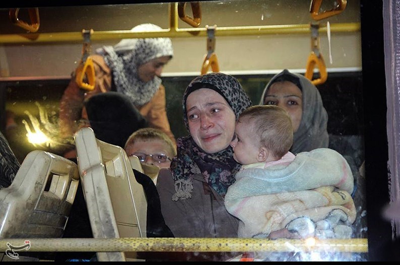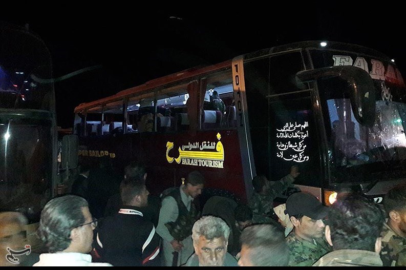 لمی کیالی، خبرنگار خبرگزاری تسنیم، حلب: شب گذشته اتوبوسهای حامل اهالی کفریا و فوعه پس از جنایت هولناک روز گذشته در منطقه تحت اشغال تروریستهای تکفیری در الراشدین که به شهید و زخمی شدن دهها زن و کودک بیگناه منجر شد، و پس از روزها کارشکنی تروریستها، وارد منطقه «جبرین» در شرق شهر حلب شدند. گروههای تکفیری بهمدت سه روز این انسانهای بیدفاع را بهخلاف تعهداتی که در توافق مبادله داده بودند، بدون غذا و آب و در سختترین شرایط نگه داشته و مانع عبورشان شده بودند.