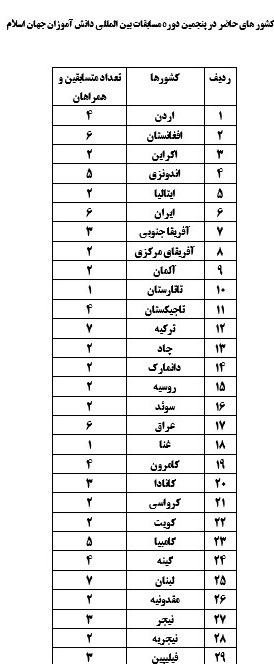 اسامی کشورهای اسلامی و تعداد همراهان به تفکیک در جدول ذیل جهت اطلاع مخاطبان منتشر شده است.