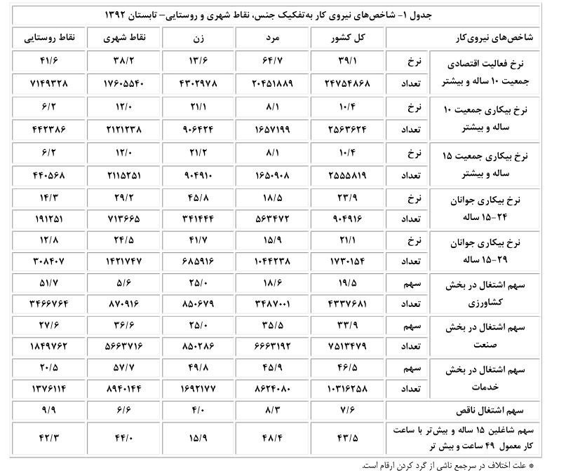 سند مرکز آمار از وضعیت بیکاری در تابستان 92 بهشرح زیر است: