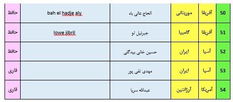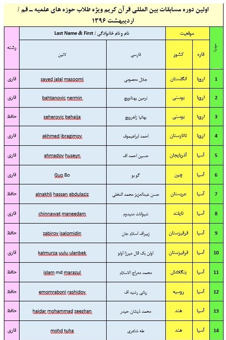 اسامی شرکت‌کنندگان این دوره از مسابقات در جدول ذیل جهت اطلاع مخاطبان منتشر شده است.