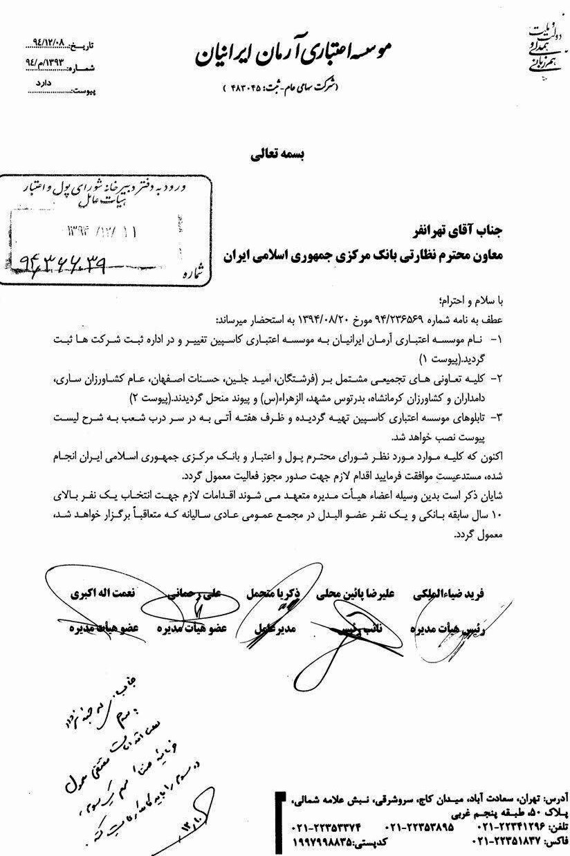 آنهم در حالی که بانک مرکزی اسفند 1394 به موسسه اعتباری کاسپین مجوز داد تا 8 تعاونی غیرمجاز ادغام شوند اما این موسسه‌ها قبل از پایان ادغام‌ها تابلوی کاسپین را روی سر در تعاونی‌های خود نصب کردند و مردم نیز با مراجعه به سایت بانک مرکزی و اطلاع از صدور مجوز به این مجوز اعتماد کرده و در این تعاونی‌ها که نام کاسپین را بر سر در خود نصب کرده بودند، سپرده‌گذاری کردند.