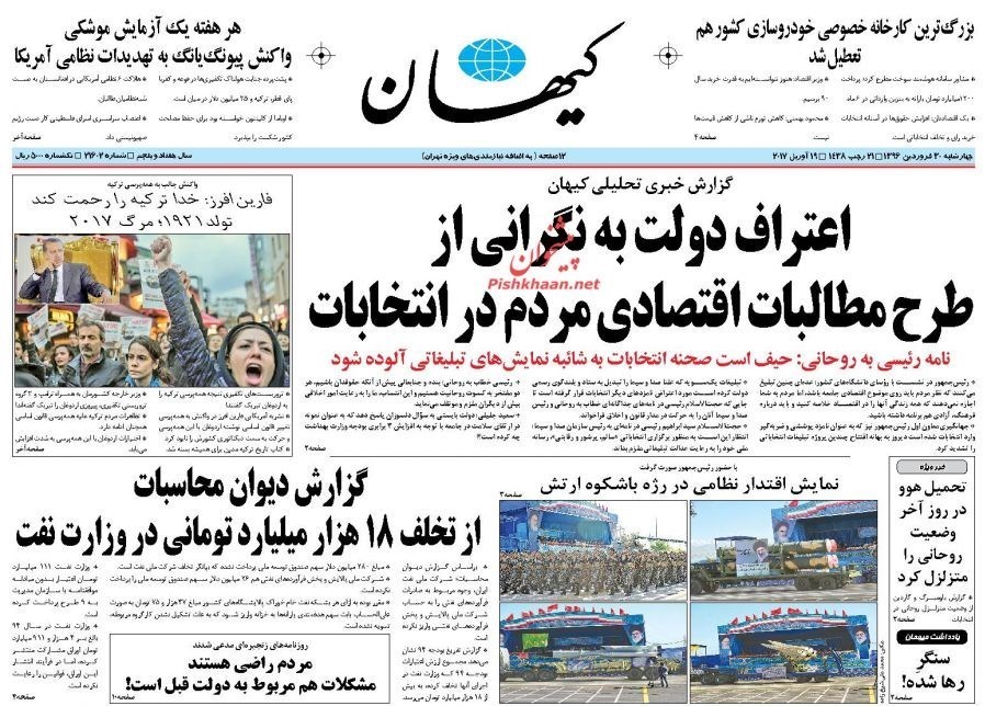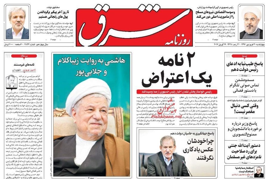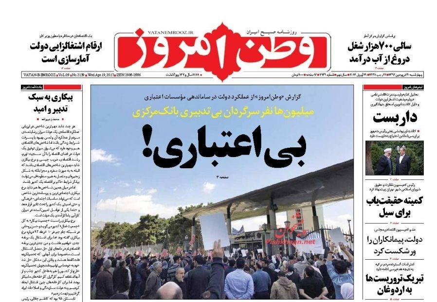 تصاویر صفحه اول روزنامه‌های چهارشنبه 30 فروردین