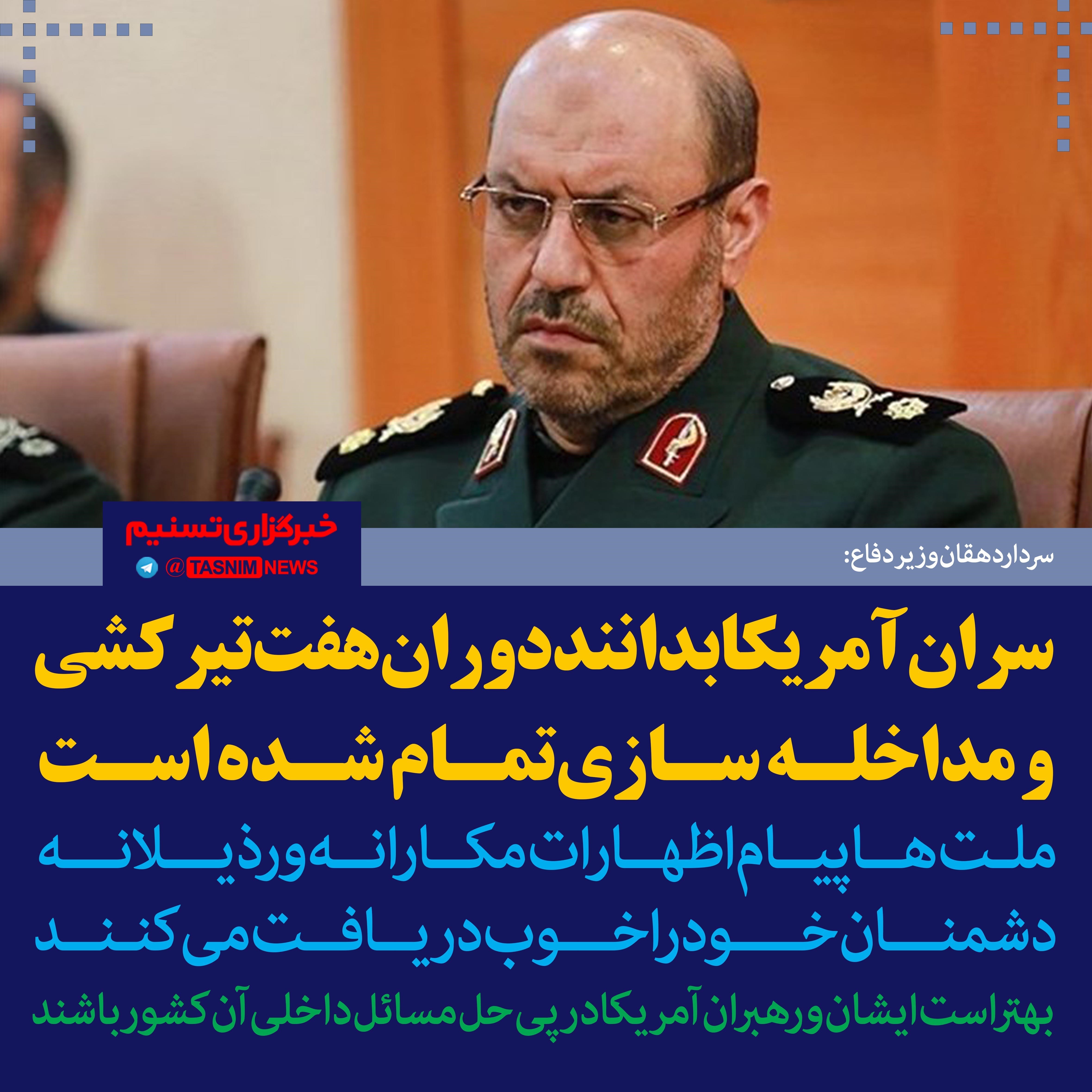 وزیر دفاع گفت: سران به اصطلاح استراتژیست آمریکا باید بدانند که دوره و عصر هفت تیرکشی، اتهام زنی، پرونده سازی و مداخله سازی گذشته است.