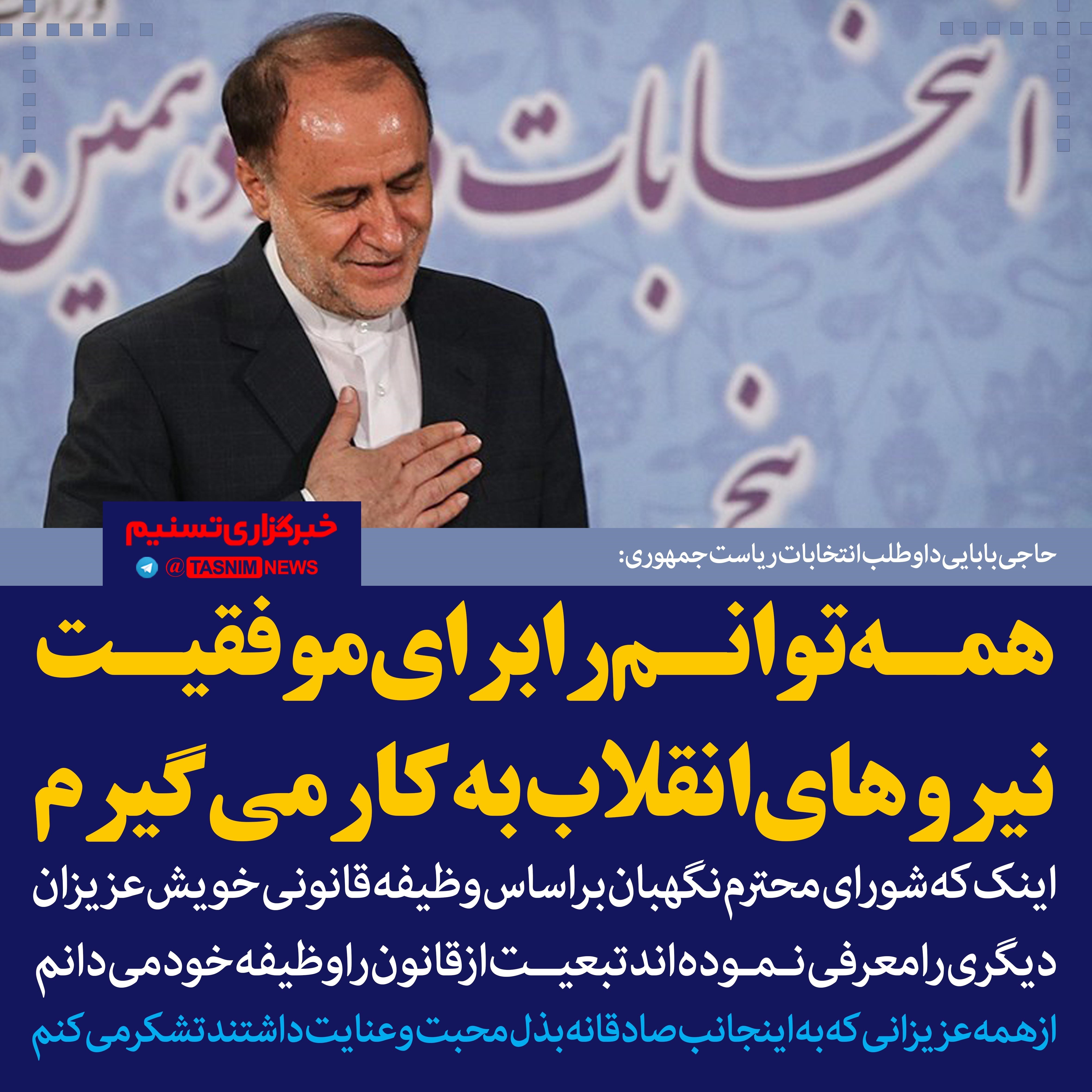 داوطلب احراز صلاحیت نشده انتخابات ریاست‌جمهوری در بیانیه‌ای اعلام کرد: همه توانم را برای موفقیت نیروهای انقلاب به کار می‌گیرم.
