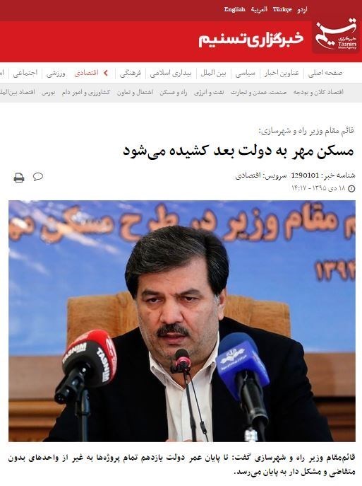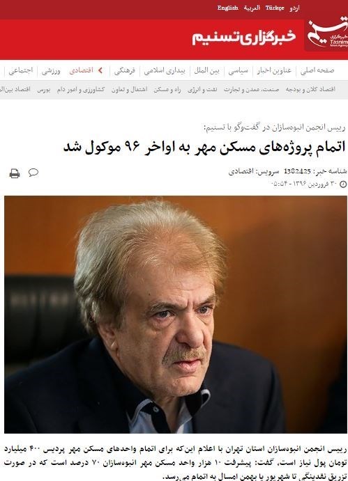چند روز بعد یعنی 18 دیماه 95 محسن نریمان معاون وزیر راه و شهرسازی در شرکت عمران شهرهای جدید ایران به برنامه زنده تیتر امشب رفت تا وضعیت پروژههای مسکن مهر را تشریح کند.