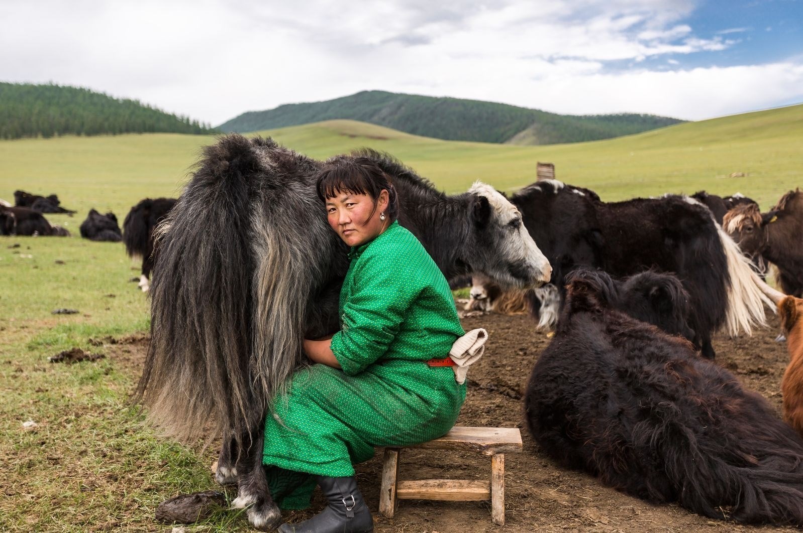 - عکس روز نشنال جئوگرافیک به تصویر یک زن مغولی در حال دوشیدن شیر گاو کوهان دار در یک صبح سرد اختصاص یافته است.
