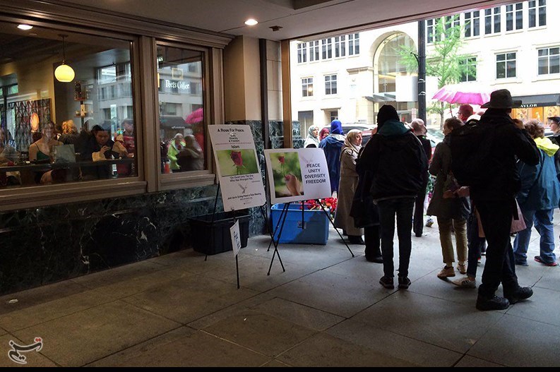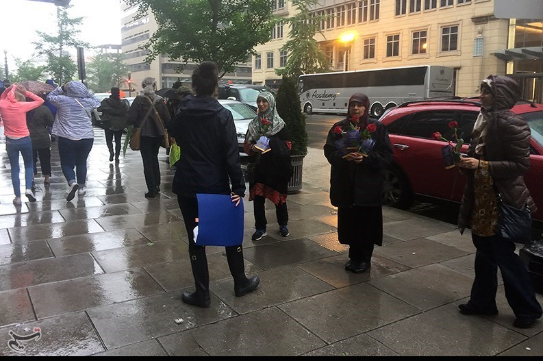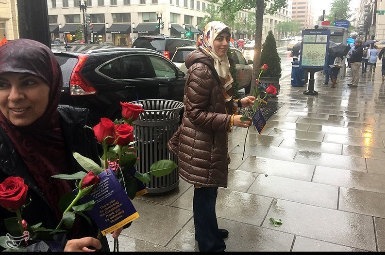 به گزارش گروه دفاتر خارجی خبرگزاری تسنیم،‌خبرنگار تسنیم در واشنگتن اعلام کرد روز شنبه ده‌ها نفر از مسلمانان حومه پایتخت آمریکا در مقابل یکی از ایستگاه‌های متروی این شهر به نام "فراگوت نورت" به خاطرحمایت مردم آمریکا از مسلمانان در مقابل دستورات اجرایی ترامپ علیه مسلمانان، شاخه‌‌های گل رز را به شهروندان آمریکایی اهدا کردند