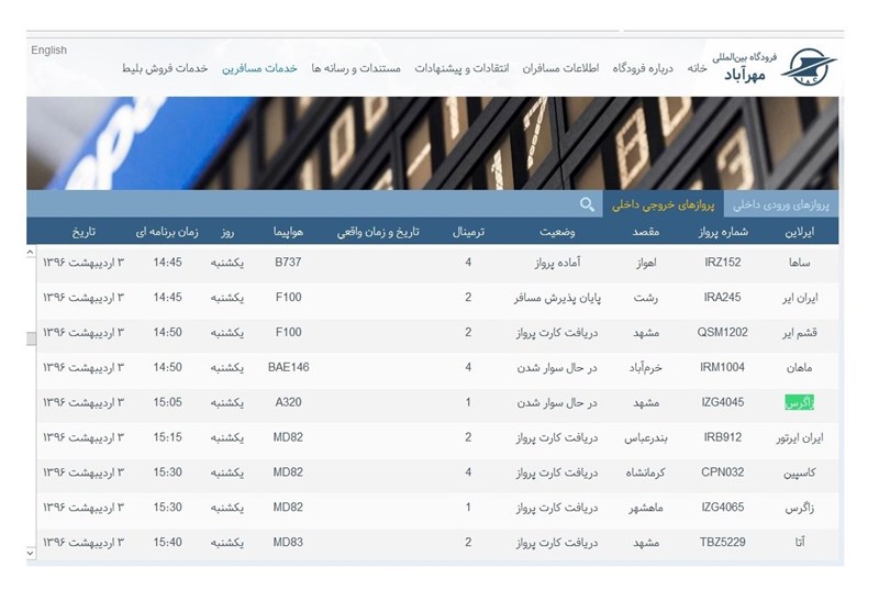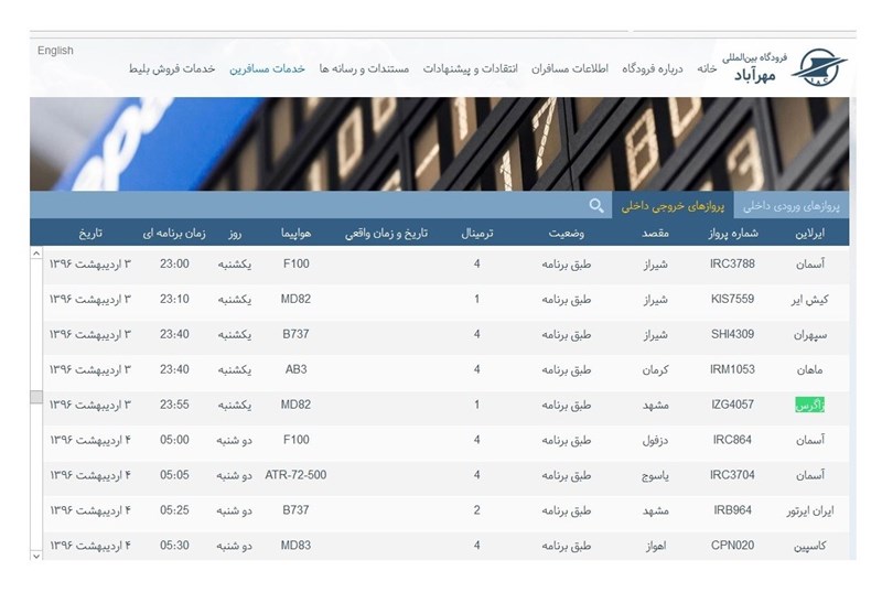 از سوی دیگر بررسی جدول پروازهای فروگاه مهرآباد حاکی از آن است که امروز هواپیمایی زاگرس سه پرواز به سمت مشهد دارد. پرواز شماره 4091 هواپیمایی زاگرس ساعت 9:10 صبح امروز فرودگاه مهرآباد را به سمت فرودگاه هاشمینژاد مشهد ترک کرده است.