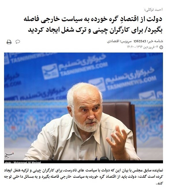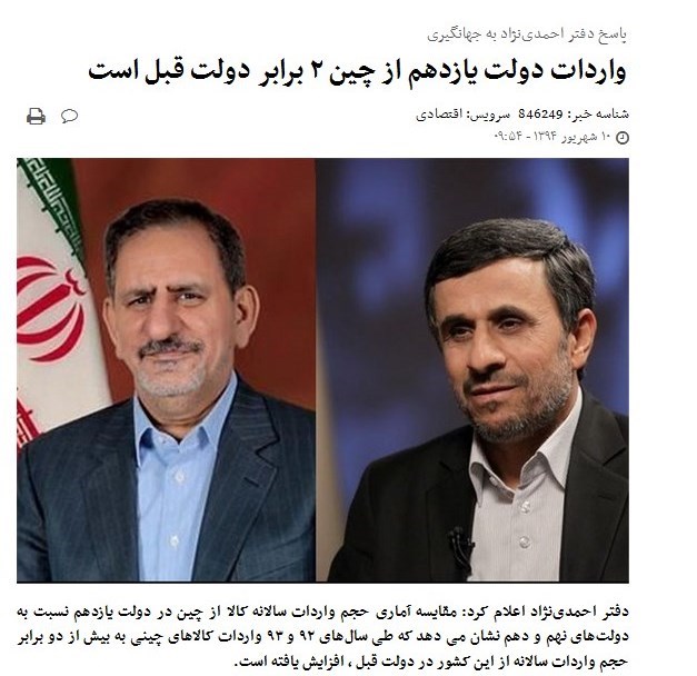 با گذشت نزدیک به 4سال از فعالیت دولت یازدهم آمارها حکایت از افزایش میزان واردات از چین در این دولت دارد و شواهد نشان میدهد که بهجای اشتغالزایی برای کارگران ایرانی برای کارگران چینی شغل ایجاد شده است.
