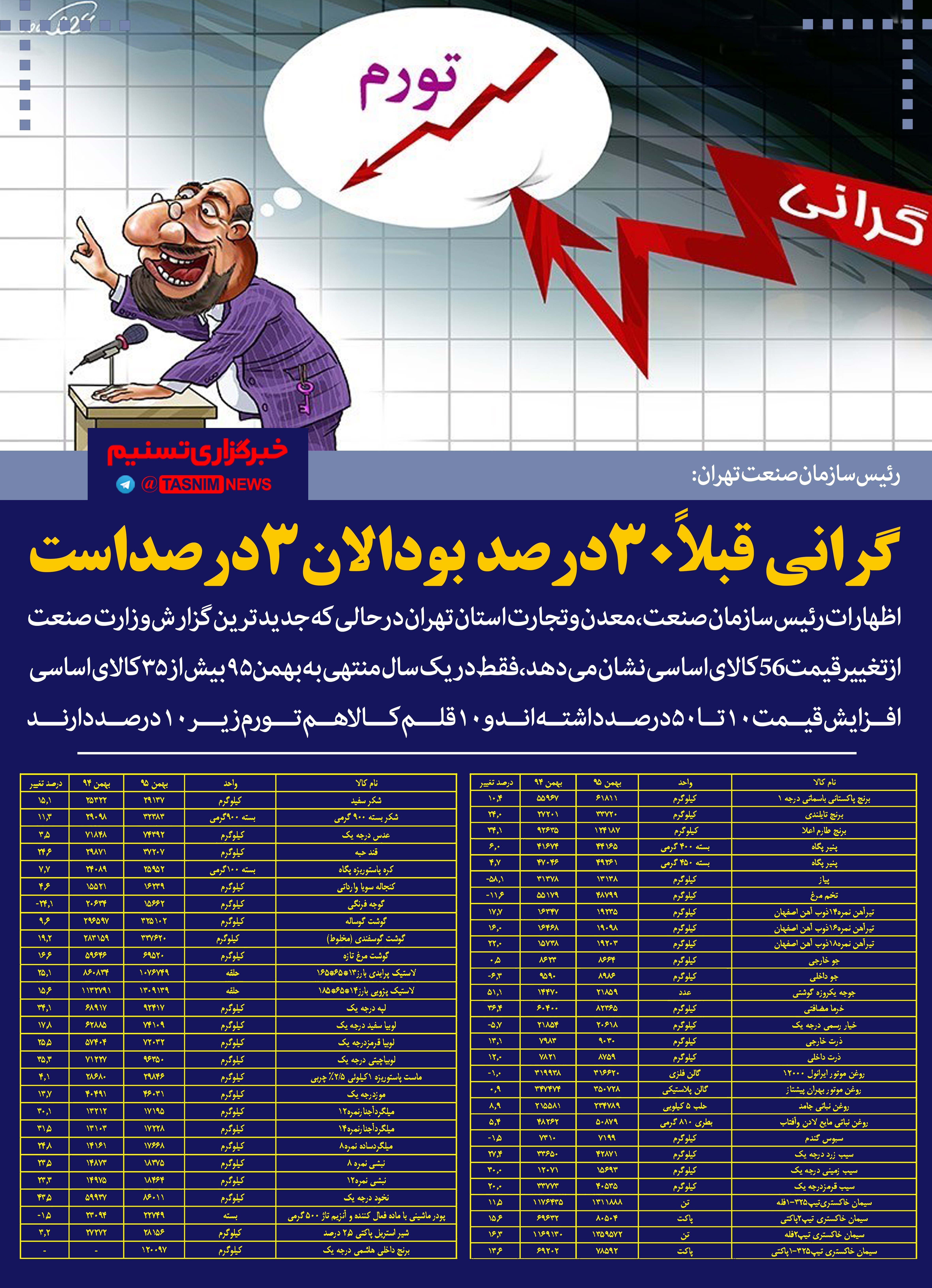 فتوتیتر/رئیس سازمان صنعت تهران:گرانی الان 3درصد است