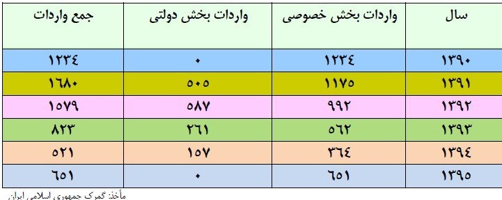 همچنین در جدول زیر میزان واردات شکر به تفکیک بخش دولتی و خصوصی قابل مشاهده است. ارقام بر اساس هزار تن میباشد.