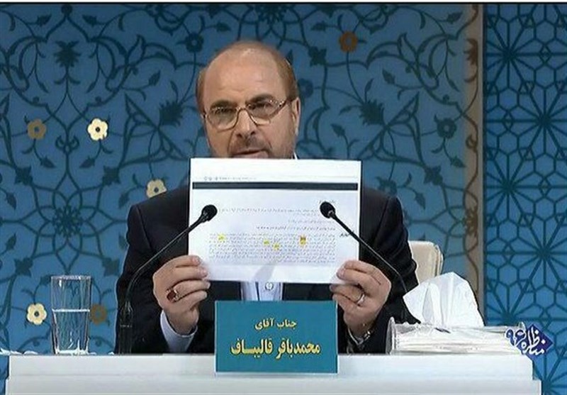 سپس روحانی از قالیباف خواست سند اظهاراتش را به او بدهد که روحانی بعد از دریافت این سند، مجبور به توضیح درباره چرایی اظهارات خود شد.