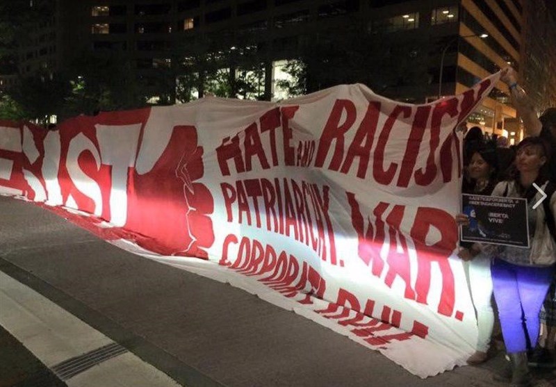 به گزارش گروه بینالملل خبرگزاری تسنیم، گروه بزرگی از تظاهرات کنندگان پنجشنبه شب مقابل «هتل بینالمللی ترامپ» در واشنگتن پایتخت آمریکا تظاهرات کردند.