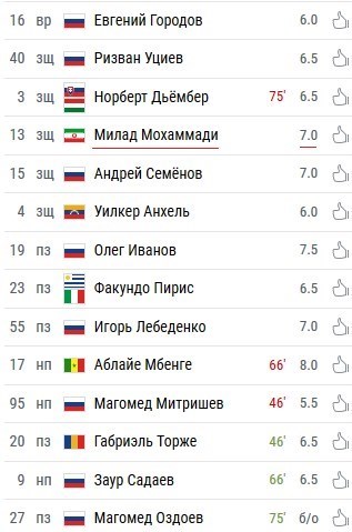 خبرگزاری ورزشی چمپیونات روسیه در ارزیابی فنی عملکرد بازیکنان 2 تیم ترک گروژنی و اورال به میلاد محمدی نمره خوب 7 را اختصاص داد. آلبای، مهاجم ترک گروژنی و زننده 2 گل بازی با دریافت نمره 8 بهترین بازیکن میدان معرفی شد.