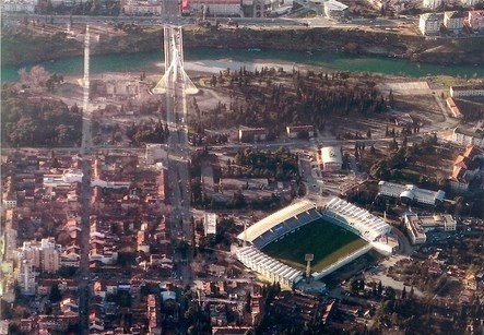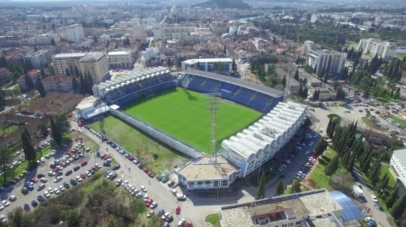 ورزشگاهی که از تیم ملی ایران میزبانی خواهد کرد 15 هزار و 230 نفر ظرفیت دارد و در محدوده شرقی شهر قرار دارد. ورزشگاهی که در هوای بارانی سرپوشیده میشود و شرایط مناسبی دارد. هواداران مونتهنگرویی که شورشی هستند، هنگام برگزاری بازیهای تیم ملی کشورشان با مواد دودزا روی سکوها رنگین کمان دودی را شکل میدهند که به نوعی به زیبا شدن سکوها حین برگزاری بازیها کمک میکند.