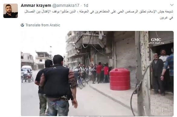 روز گذشته ساکنان غیرنظامی مناطق تحت اشغال گروههای تروریستی در حموریه و زملکا در حومه دمشق خواستار توقف درگیریها میان این گروهها بهسبب پیامدهای خطرناک آن برای غیرنظامیان شدند، اما تروریستهای جیش الاسلام با گلوله به غیرنظامیان مناطق تحت اشغال خود پاسخ دادند که در نتیجه شماری از غیرنظامیان کشته و یا زخمی شدند.