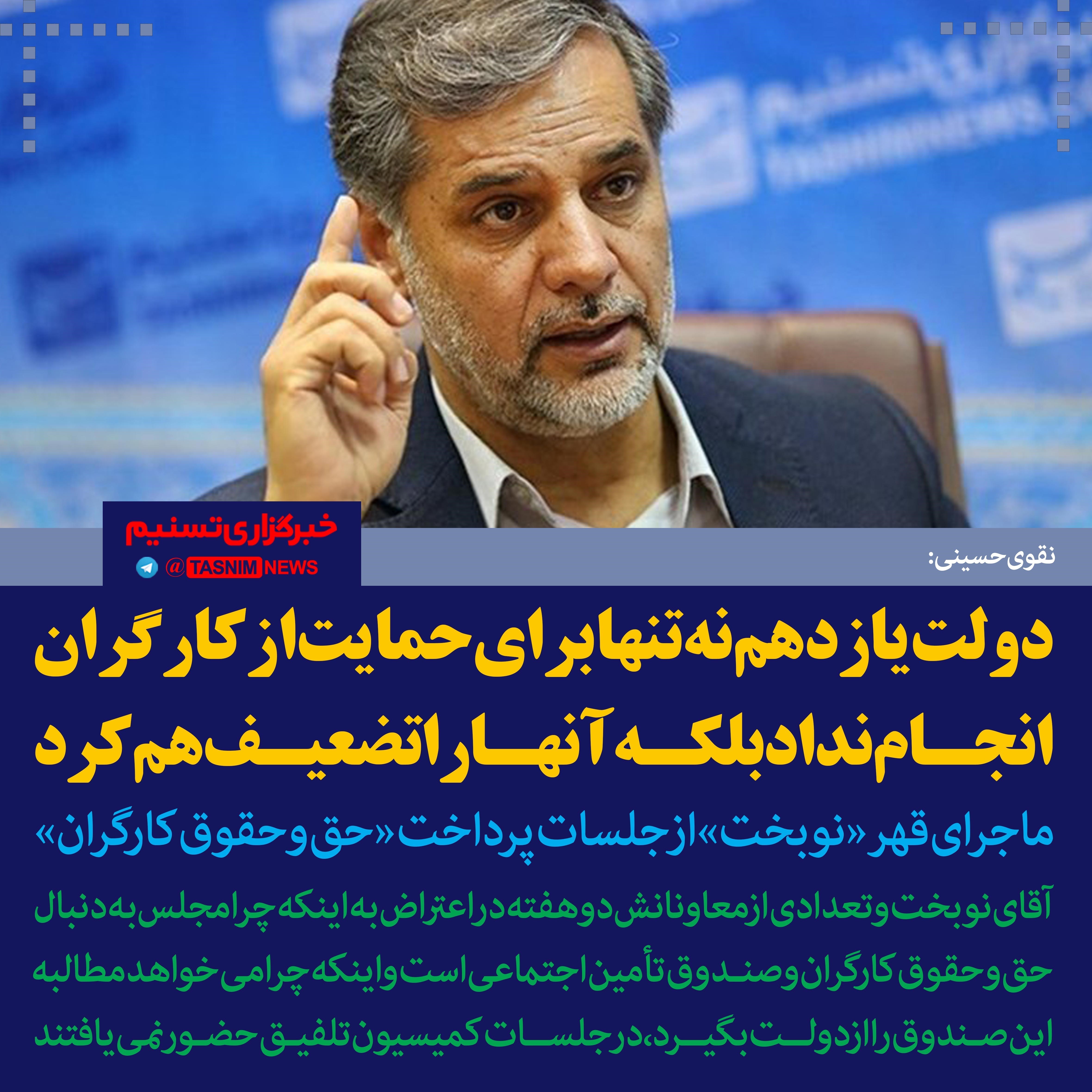 فتوتیتر/نقوی حسینی:ماجرای قهر «نوبخت» از جلسات پرداخت «حق و حقوق کارگران»