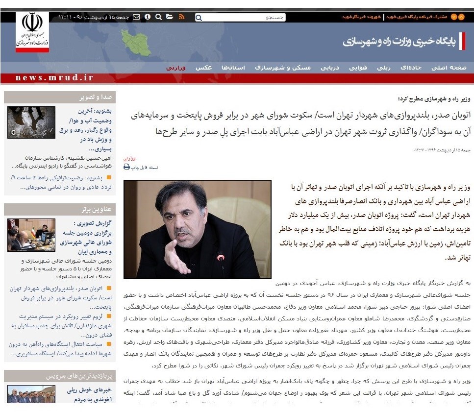 به گزارش خبرنگار اقتصادی خبرگزاری تسنیم، وزارت راه و شهرسازی بهعنوان یکی از زیرمجموعههای عریض و طویل دولت یازدهم با "بودجه عمومی دولت" فعالیتهای تخریبی انتخاباتی خود علیه شهرداری تهران را ماهها پیش از آغاز کارزار قانونی انتخابات دوازدهمین دوره ریاستجمهوری آغاز کرده بود. در این زمینه عباس آخوندی عالیترین مقام این وزارتخانه همواره پیشقراول بوده و در هر نقطه، مکان و برنامههای حوزه تحت مدیریتش از فرصت "تریبون" استفاده کرده، شهرداری و به خصوص شهرداری تهران را باد انتقاد گرفته است.
