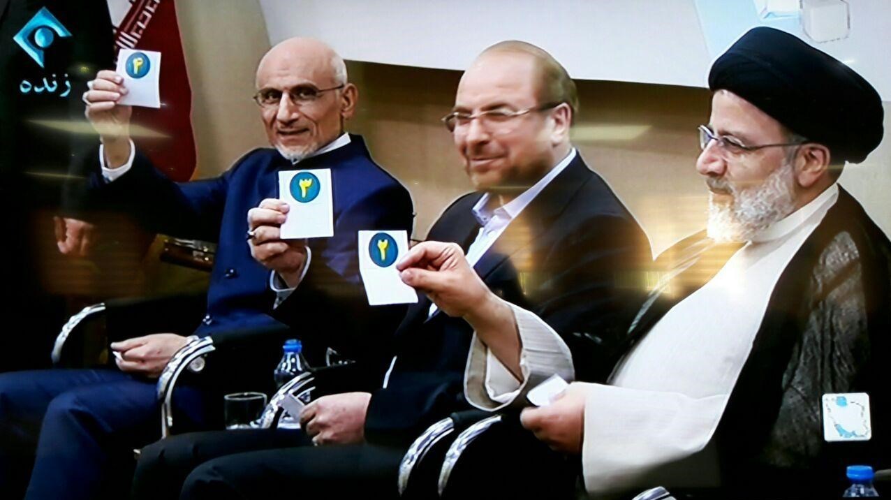 ✅ قرعه کشی محل نشستن کاندیداهای انتخابات ریاست جمهوری برگزار شد و بر این اساس، اسحاق جهانگیری در صندلی شماره 1، سید ابراهیم رئیسی در صندلی شماره 2، محمد باقر قالیباف در صندلی شماره 3، سید مصفی میرسلیم در صندلی شماره 4، حسن روحانی در صندلی شماره 5 و سید مصطفی هاشمی طبا هم در صندلی شماره 6 مینشند.