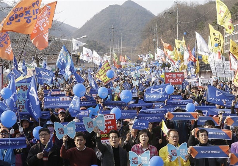 صدها نفر از مردم کره جنوبی در اعتراض به استقرار سامانه دفاع موشکی تاد آمریکا در این کشور تظاهرات کردند.