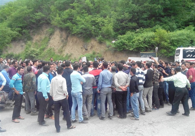 لحظاتی پیش حسن روحانی در جمع معدنچیان در محل فاجعه یورت آزادشهر حاضر شد اما اعتراضهای کارگران سبب شد روحانی محل معدن را ترک کنند.