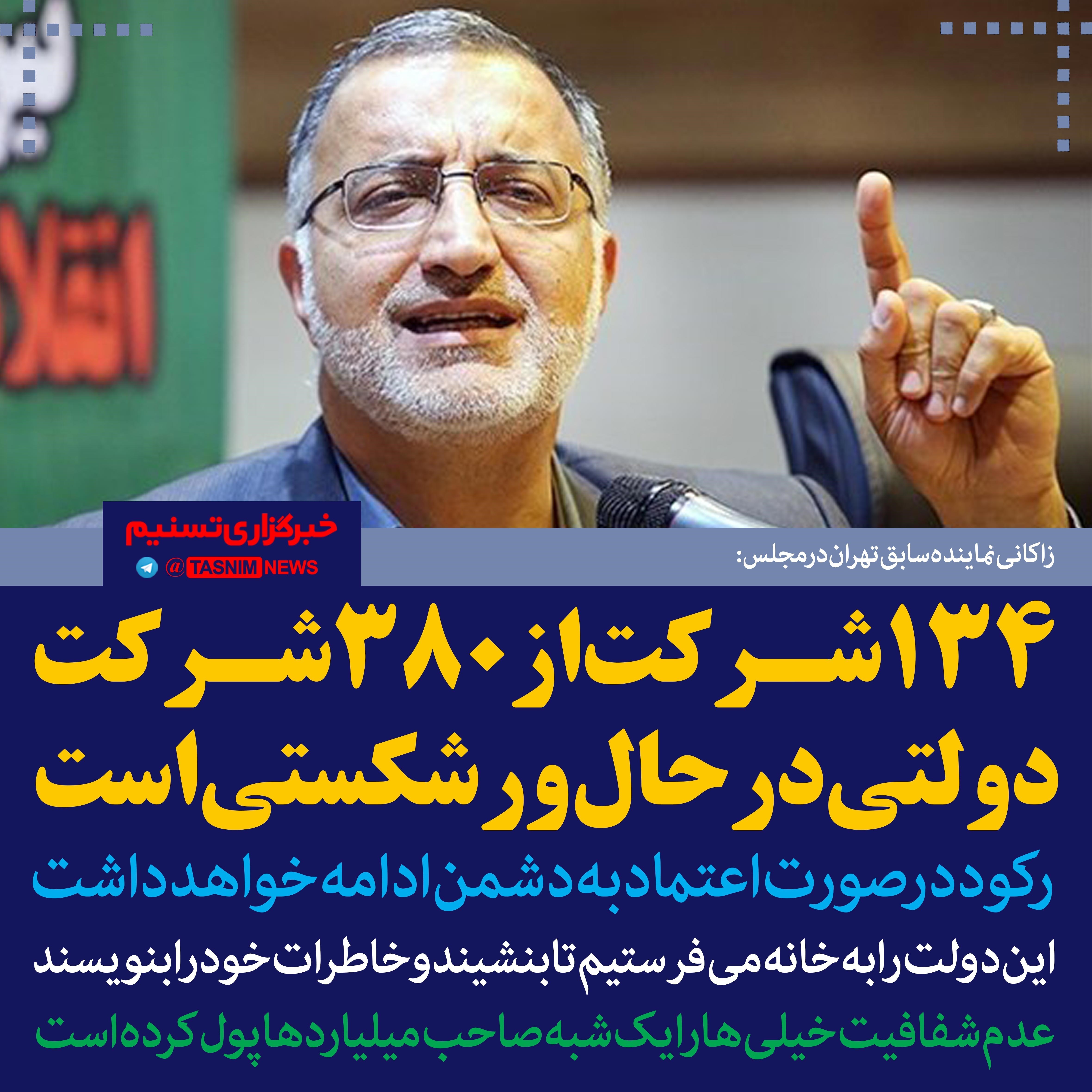 فتوتیتر/زاکانی:134 شرکت از "380 شرکت دولتی" در حال ورشکستی است