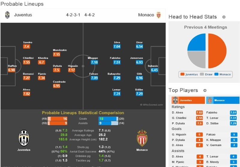 2 گل ایگواین در بازی رفت در ورزشگاه لوییدوم کافی بود تا یوونتوس با برتری 2 بر صفر یک پای خود را در فینال ببیند اما از آنجایی که در فوتبال چیزی قابل پیشبینی نیست، موناکو میآید تا اتفاقی تا به حال نشدنی را رقم بزند؛ برتری در زمین جدید یوونتوس آن هم با اختلاف 3 گل! آلگری، سرمربی یوونتوس به قیمت از دست دادن 2 امتیاز در دربی تورین به بازیکنان اصلی خود در دربی ابتدای هفته استراحت داد و تا آستانه شکست پیش رفت اما اصلا نگران نیست چون میتواند با برتری در بازی هفته آینده ششمین قهرمانی متوالی خود در سری A را تا حدود زیادی قطعی میکند. موناکو اما به شکل توقف ناپذیری در لیگ داخلی پیروز میشود و حالا فقط به 4 امتیاز از 3 بازی برای فتح لیگ نیاز دارد.
