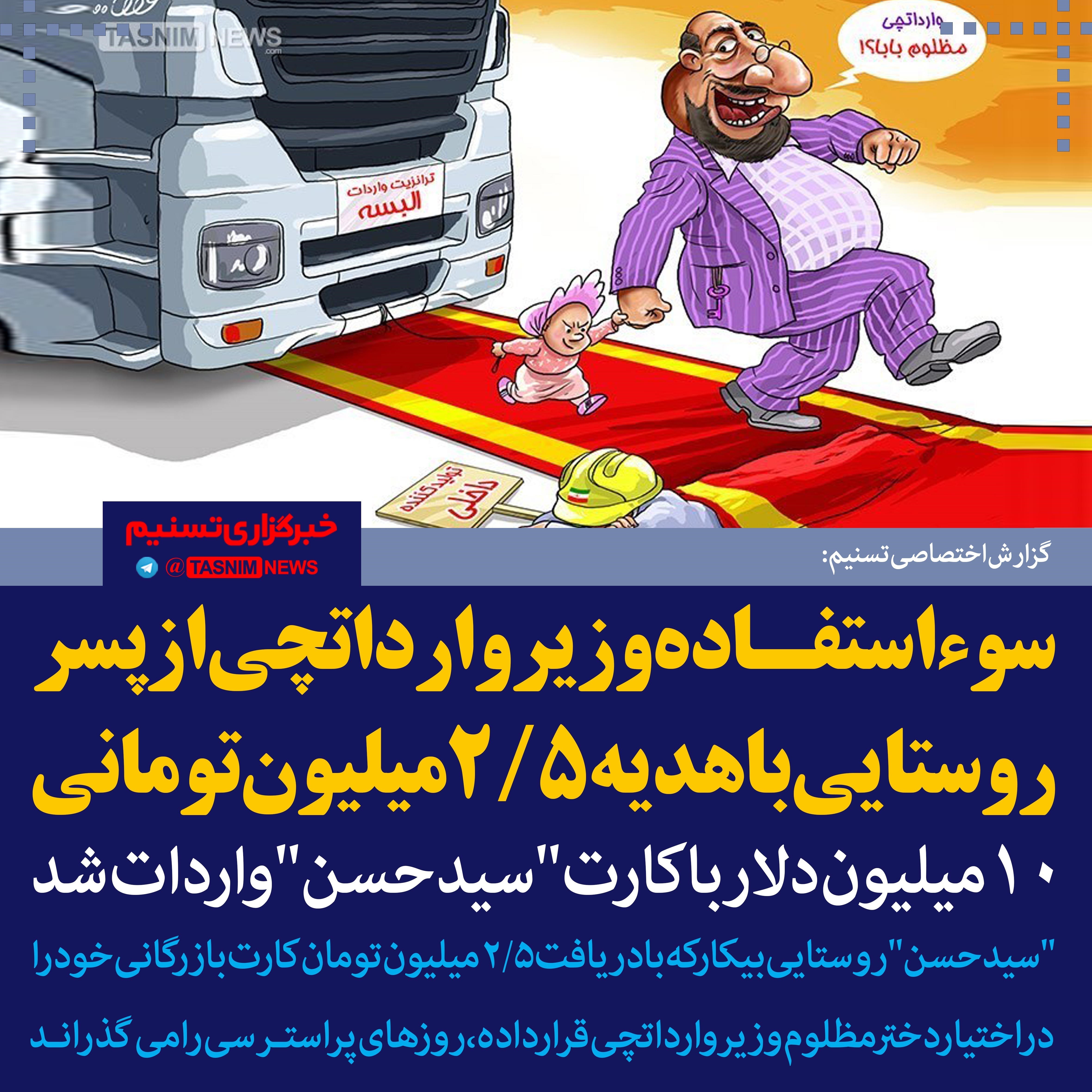 فتوتیتر/سوء‌استفاده وزیر وارداتچی از پسر روستایی با هدیه 2.5میلیون تومانی