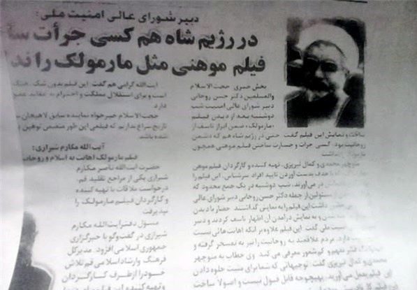 حسن روحانی که اکنون از فضای بسته هنر و امنیتی بودن آن سخن به زبان می آورد(بگذریم از آنکه وزیر ارشاد و معاون سیاسیاش سابقه امنیتی بودن داشتند) فراموش کرده در زمان اکران فیلم سینمایی مارمولک که دبیر شورای عالی انقلاب فرهنگی بود، ضمن ابراز تاسف از ساخت و نمایش این فیلم گفته بود: حتی در رژیم شاه هم که دشمن روحانیت بود، کسی جرأت و جسارت ساخت فیلم موهنی مثل مارمولک را نداشت.