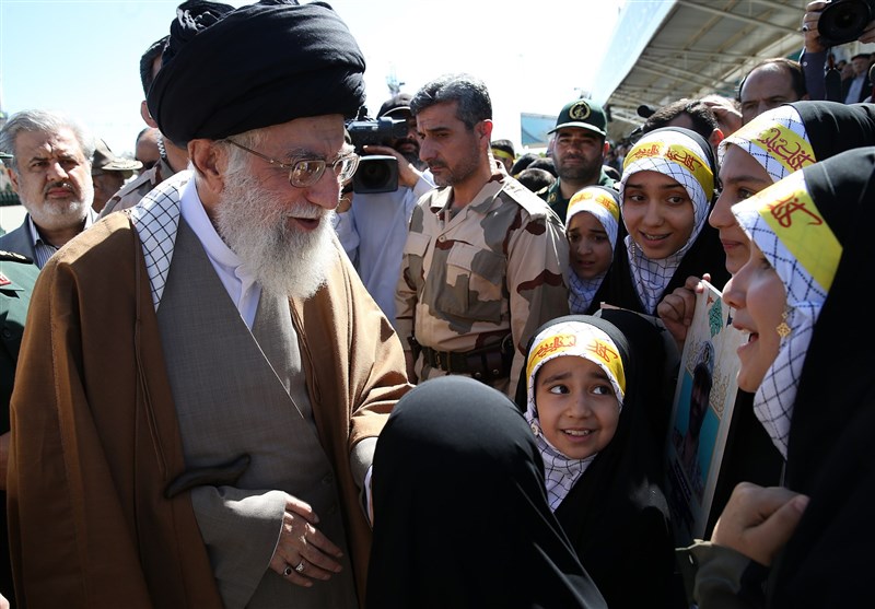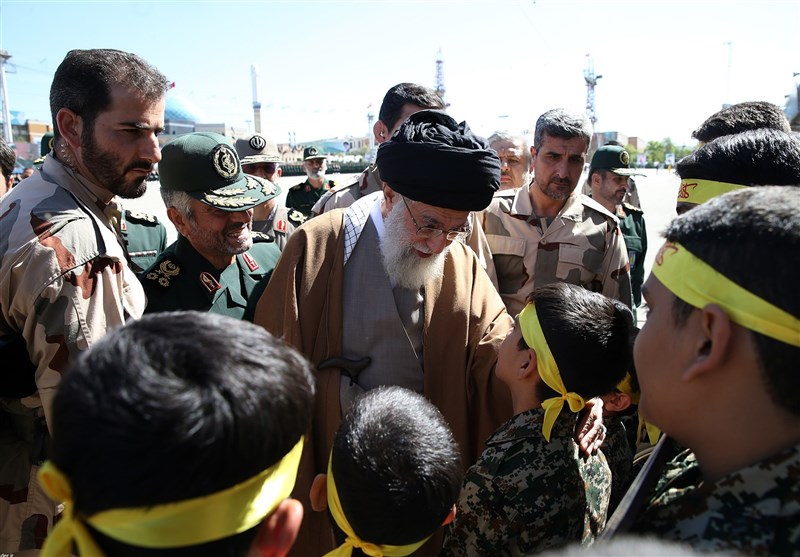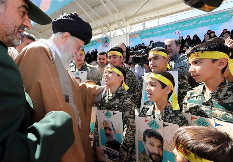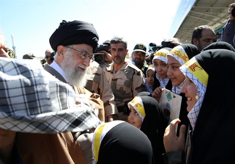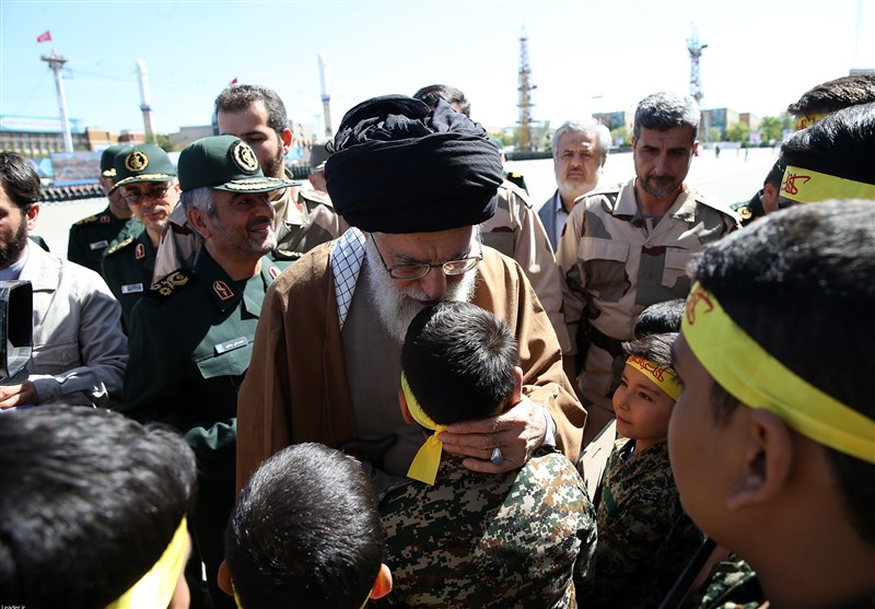 رهبر معظم انقلاب اسلامی در ابتدای ورود به میدان، ضمن حضور بر مزار شهیدان گمنام و قرائت فاتحه و گرامیداشت یاد و خاطره شهیدان دفاع مقدس و دیدن سان از یگانهای حاضر در میدان، جانبازان سرافراز حاضر در میدان و چند تن از فرزندان شهیدان مدافع حرم را مورد تفقد قرار دادند.