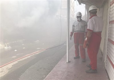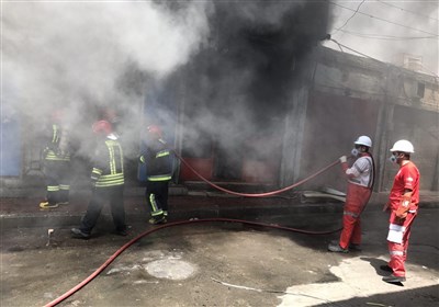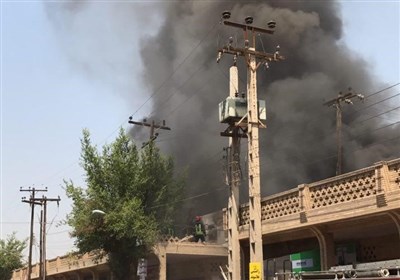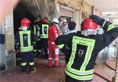 ادامه آتش‌سوزی مهیب در پاساژ رضوان اهواز/ 2 تن از آتش‌نشانان مجروح شدند