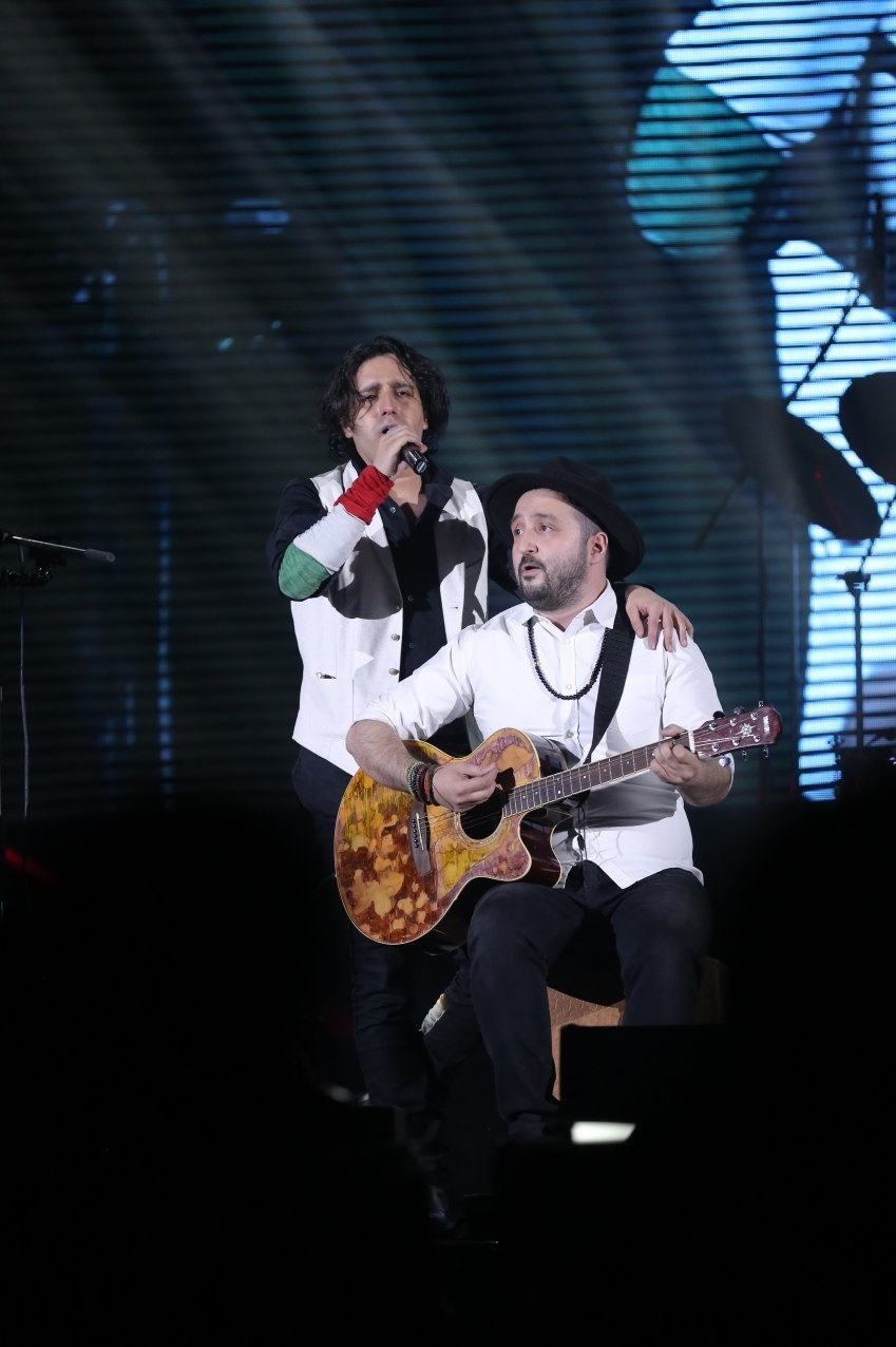 جای دیگری از کنسرت اشکان دباغ بر روی صندلی و کاوه هم بر لبهی ابتدای صحنه نشست. اشکان گیتار نواخت و کاوه هم قطعهای را خواند که تنها دو روز از انتشارش میگذرد. جالب که خیلیها این قطعه را با آفاق زمزمه کردند.