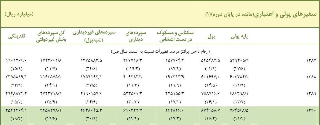 لازم به ذکر است که نقدینگی در دولت دهم از 190 هزار میلیارد تومان در پایان سال 87 به 460 هزار میلیارد تومان در پایان سال 91 رسید که 142 درصد افزایش داشته است.