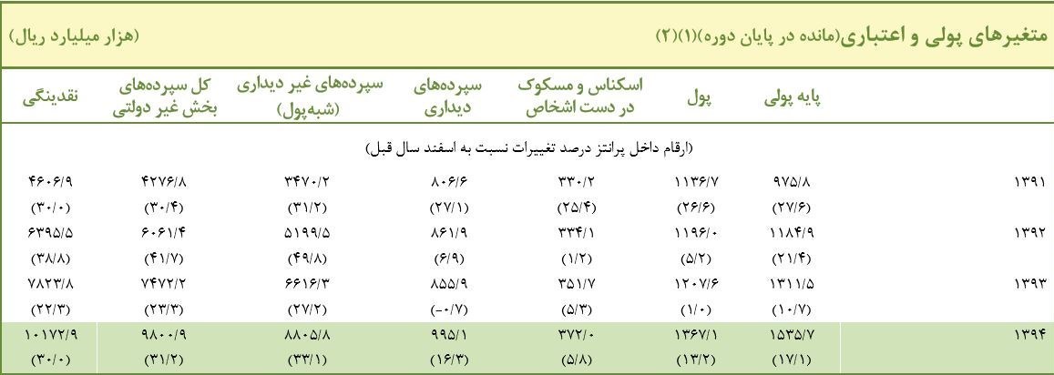 همچنین طبق گزارش نماگرهای بانک مرکزی، نرخ رشد نقدینگی در سالهای 92 تا 95 به ترتیب، 38.8 درصد، 22.3 درصد، 30 درصد و 23.2 درصد بوده است که متوسط نرخ رشد نقدینگی در دولت یازدهم 28.5 درصد می شود.