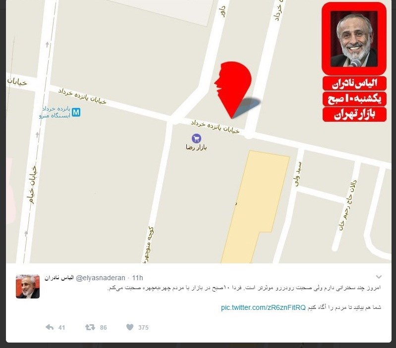 به گزار خبرنگار سیاسی خبرگزاری تسنیم، الیاس نادران اقتصاددان در صفحه شخصی خود در تویتر نوشت که "امروز چند سخنرانی دارم ولی صحبت رودررو موثرتر است. فردا 10صبح در بازار با مردم چهره‌به‌چهره صحبت می‌کنم. شما هم بیائید تا مردم را آگاه کنیم"