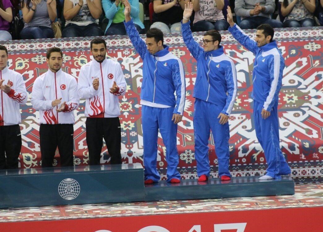 تیم ایران با ترکیب سه نفره هادی خناری نژاد، سعیدرضا کیخواه و سامان مدنی در پایان شش اسباب این رشته به مدال برنز دست یافت. تیم ایران در این رقابتها پس از تیمهای ترکیه و آذربایجان در جایگاه سوم رسید.
