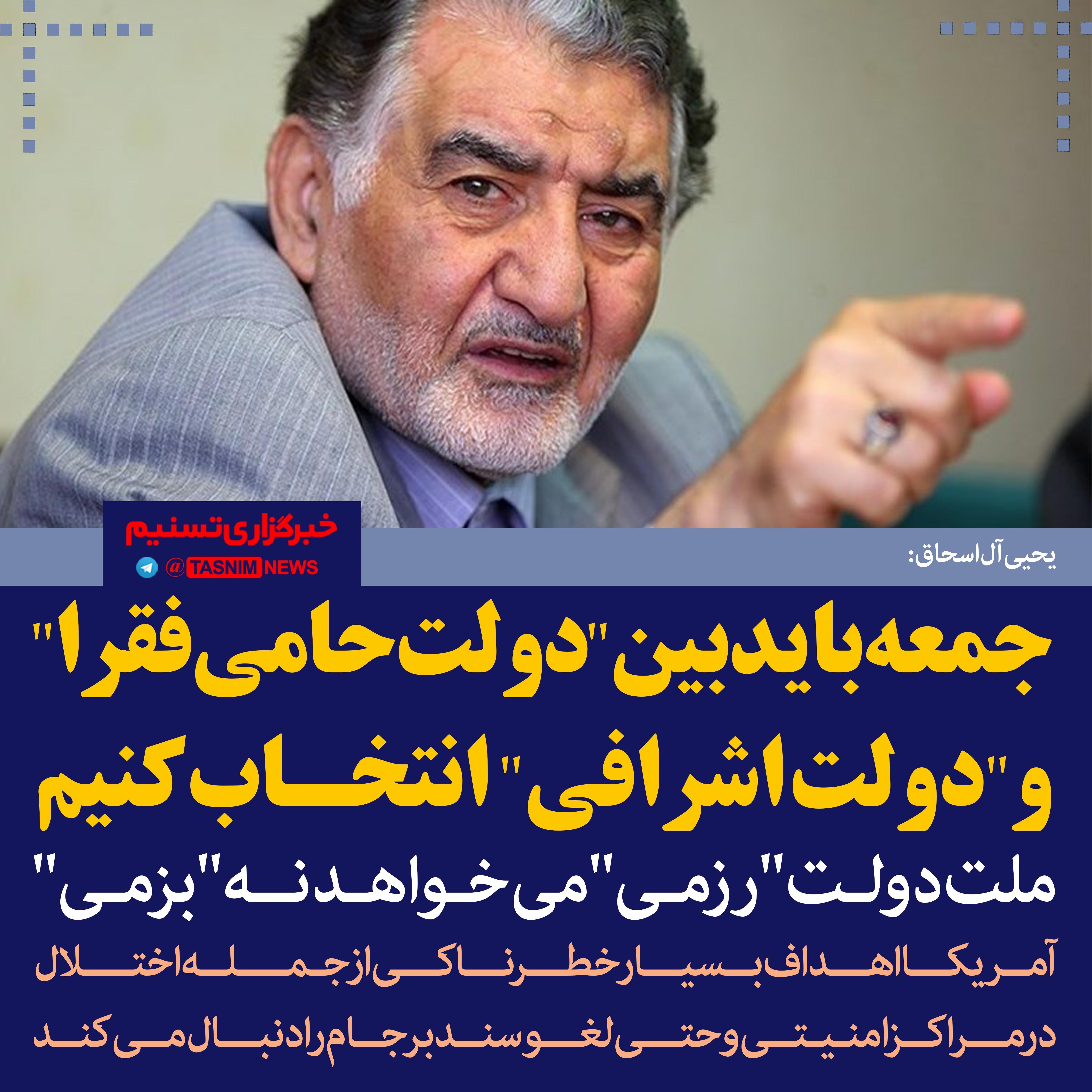 فتوتیتر/آل اسحاق:جمعه باید بین "دولت حامی فقرا" و "دولت اشرافی" انتخاب کنیم