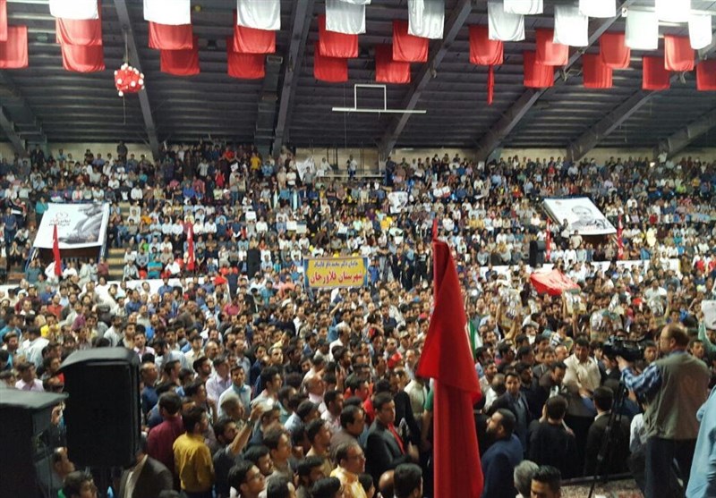 جمعیت قابل توجهی در جای جای سالن حضور دارد و به علاوه بر این که در صندلی ها نشسته در زمین سالن هم حضور داشتند.