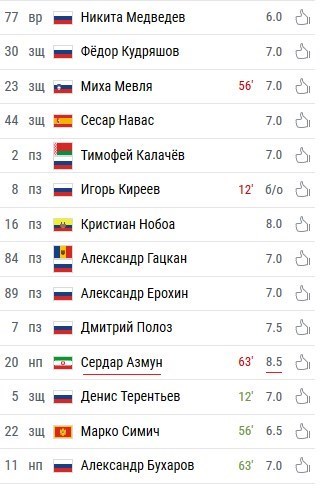 در این میان خبرگزاری ورزشی چمپیونات روسیه در ارزیابی فنی عملکرد بازیکنان 2 تیم روستوف و روبین کازان به سردار آزمون نمره عالی 8.5 را اختصاص داد که او را به بهترین بازیکن این بازی تبدیل کرد. این دومین نمره عالی 8.5 سردار در فصل جاری لیگ برتر روسیه است.