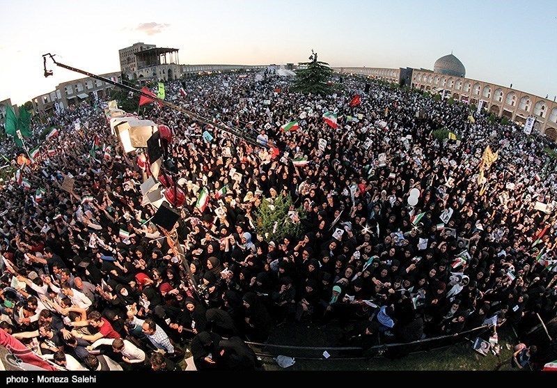 به گزارش خبرگزاری تسنیم از اصفهان، روز دوشنبه پایان مراسم سخنرانی حجت الاسلام سید ابراهیم رئیسی در اصفهان همزمان با نماز مغرب و عشا بود، اما لحظاتی پیش از دعوت مردم به اقامه نماز جماعت در مسجد امام (ره)، مجری برنامه از مردم خواست تا با نور موبایلهای خود یک بار دیگر مهر تایید به حضور باشکوهشان در این مراسم بزنند.