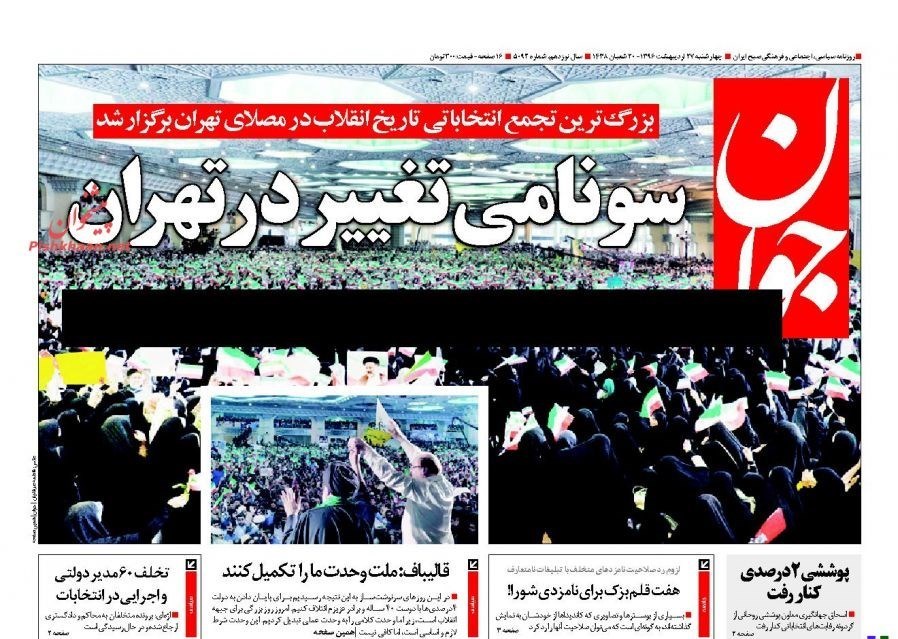 منتخب تصاویر صفحات نخست روزنامه‌های چهارشنبه 27 اردیبهشت منتشر می‌شود.