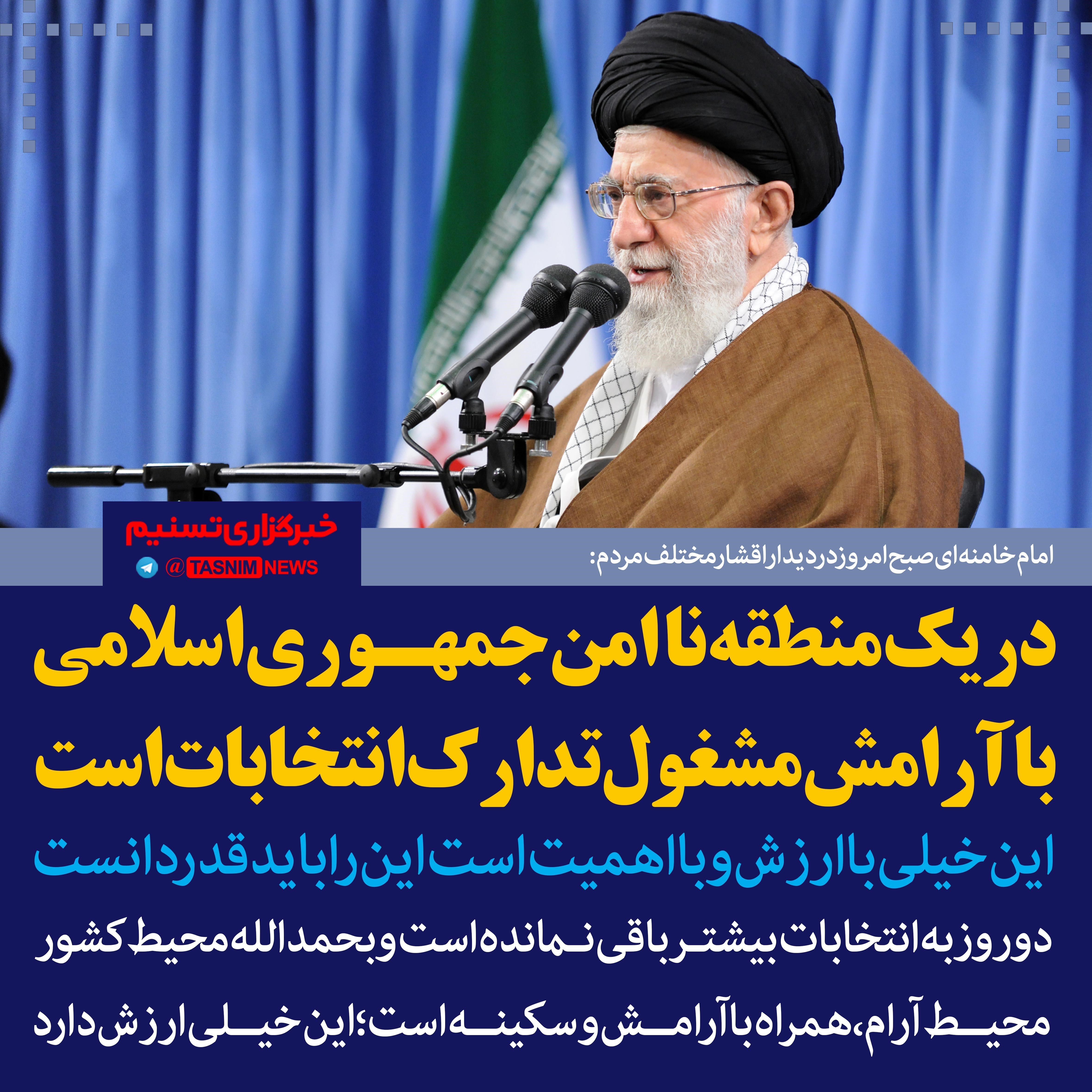 فتوتیتر/امام خامنه ای:در یک منطقه ناامن جمهوری اسلامی با آرامش مشغول تدارک انتخابات است