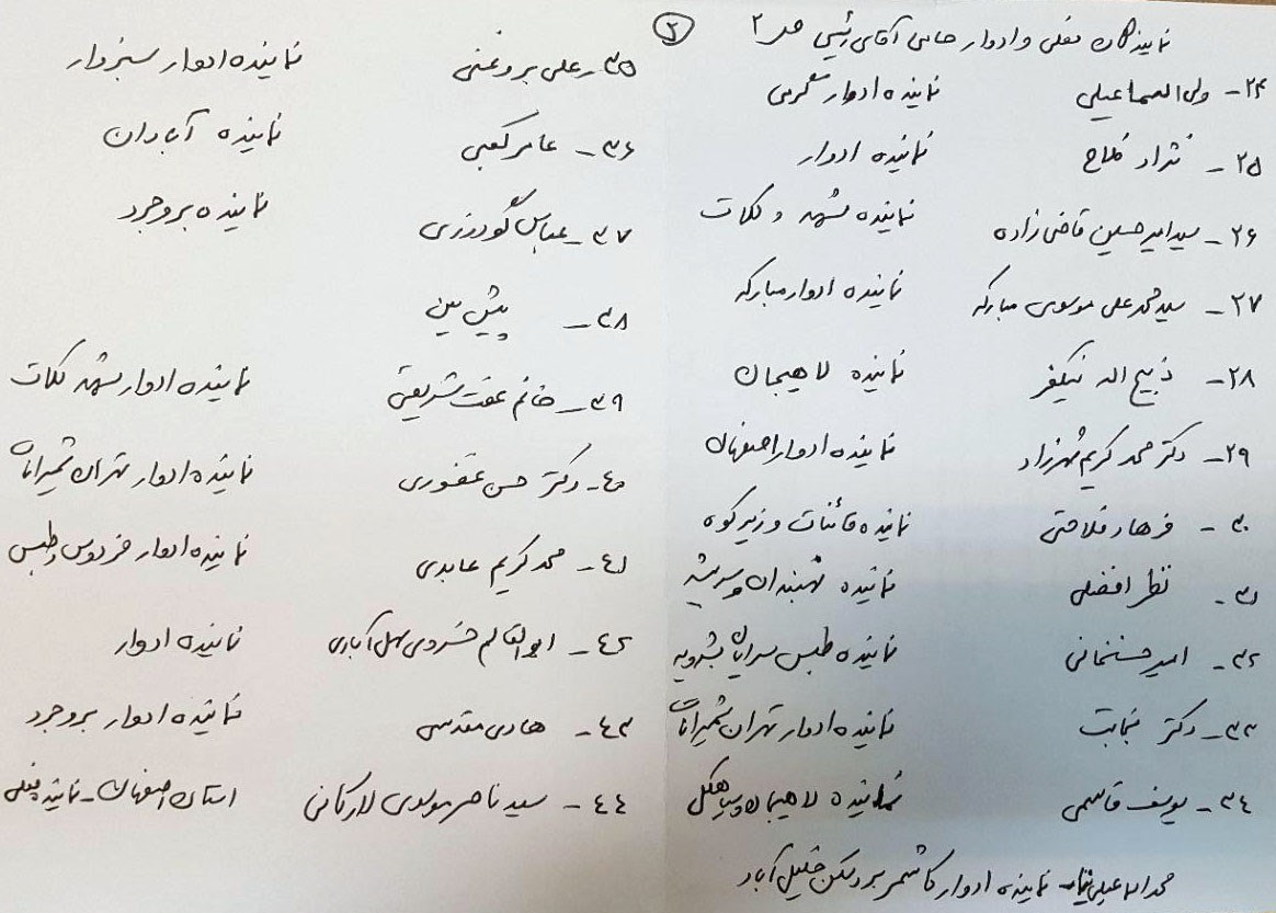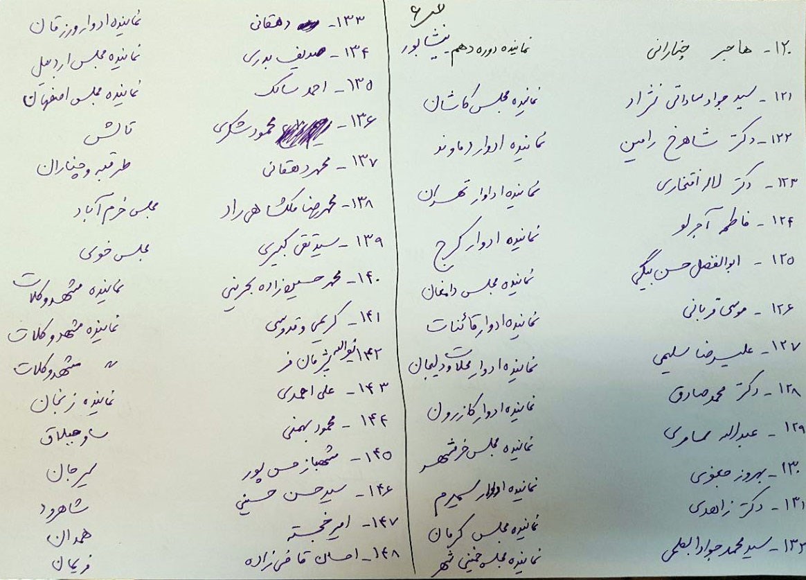 به گزارش تسنیم، آقایان گروسی نماینده ادوار شهریار و محمد رضا آشتیانی نیز جزو لیست امضا کنندگان هستند که در لیست فوق در لحاظات پایانی رسید و درج نشد که به تدریج تعداد امضاها در حال افزایش است.